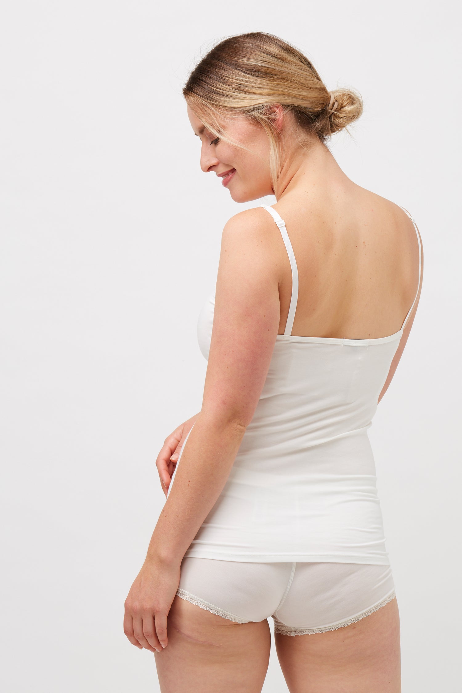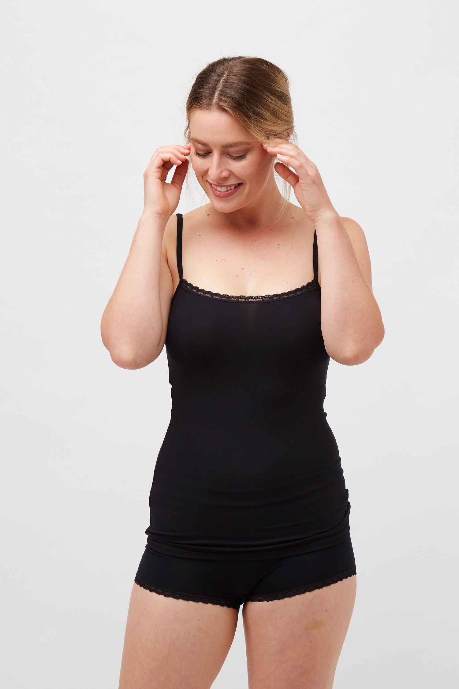 The is a Body Fit designed to be close fitting and can be worn by itself or underneath tops. If you want a more relaxed fit then go up a size or two. Don't forget it can be raised or lowered to suit different tops using the adjustable straps.