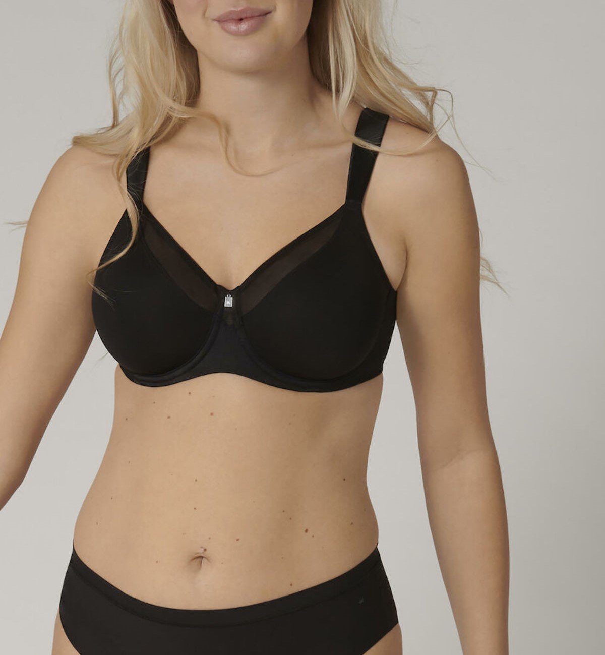 - Minimizer bra with comfort wire and mesh inserts at cups
